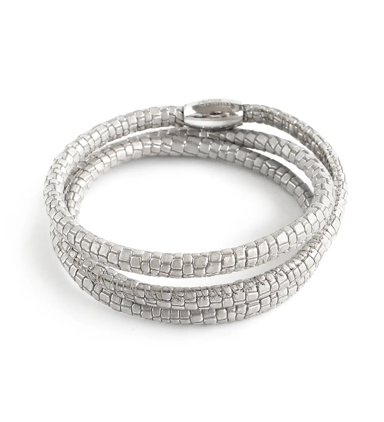 See käsitsi valmistatud sisalikumustriga nahast käevõru on modernne ja naiselik ehe, mis täiendab nii igapäevast kui ka pidulikumat rõivastust. Hõbedase tooniga reptiilmustriga nahk annab käevõrule erilise tekstuuri ja luksusliku välimuse, mis püüab pilke ning lisab stiilile isikupära. Tegemist on aksessuaariga, mis sobib suurepäraselt nii minimalistliku kui ka efektse riietuse juurde.